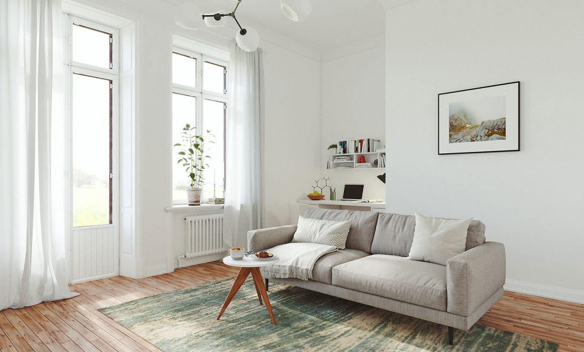 Ich entschied mich für eine minimalistische skandinavische Einrichtung und nannte mein Interior Design „Scandinavian Light“. Ich wollte einen Raum gestalten, der als gemütliches Wohnzimmer auch eine kleine Arbeitsecke bietet. Den Arbeitsbereich baute ich als Raumnische ein, so dass sich dieser im Wohnzimmer integriert, ohne weit reinzuragen. Weil Raumnischen viel Licht in einem Zimmer absorbieren können und es dadurch schnell sehr eng wirken kann, brachte ich mit hoher Decke, weißen Wänden und ausreichend Licht wieder Luft in das Interior. Auch meine Produktwahl sollte die Leichtigkeit des Raumes unterschreichen, weshalb ich mich für helle, schlichte Artikel aus der now! Serie entschied. Mit dezent platzierten Holz- und Grüntönen, sorgte ich für den Kontrast und die Gemütlichkeit im Raum.